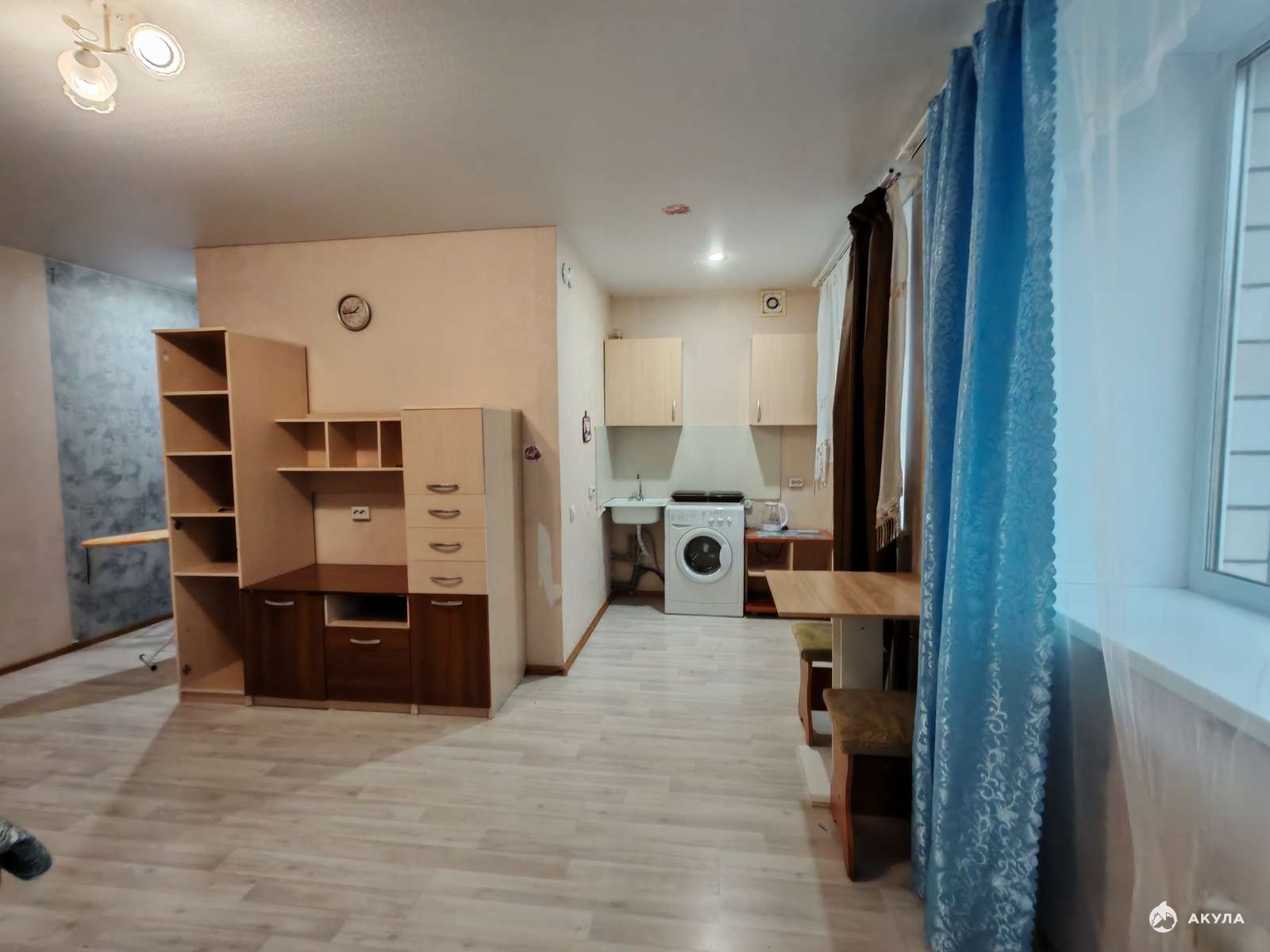 Планировка квартиры включает изолированнную зону кухни с окном и зону комнаты также со своим окном. В квартире всегда светло, за счёт больших двух окон.