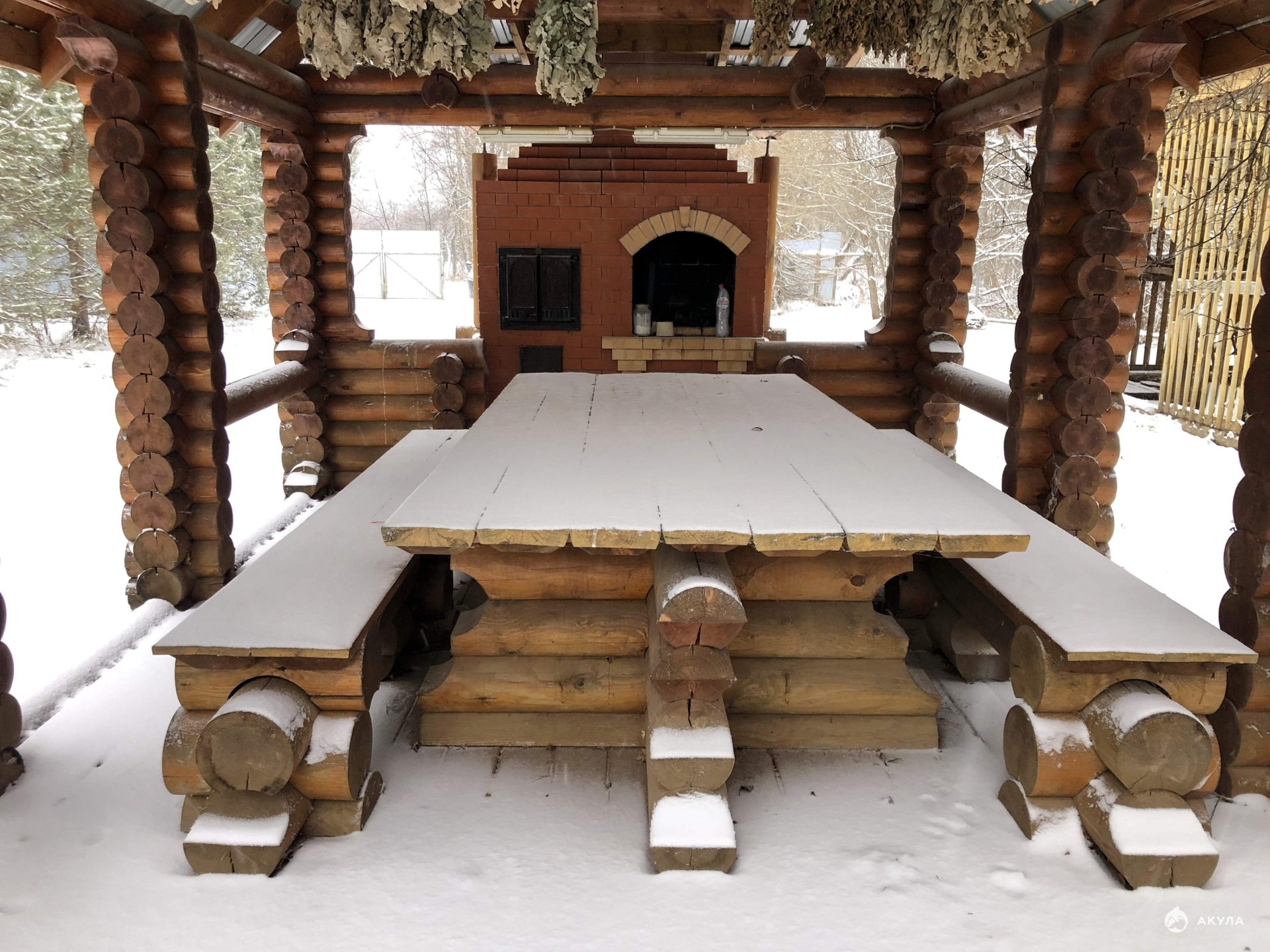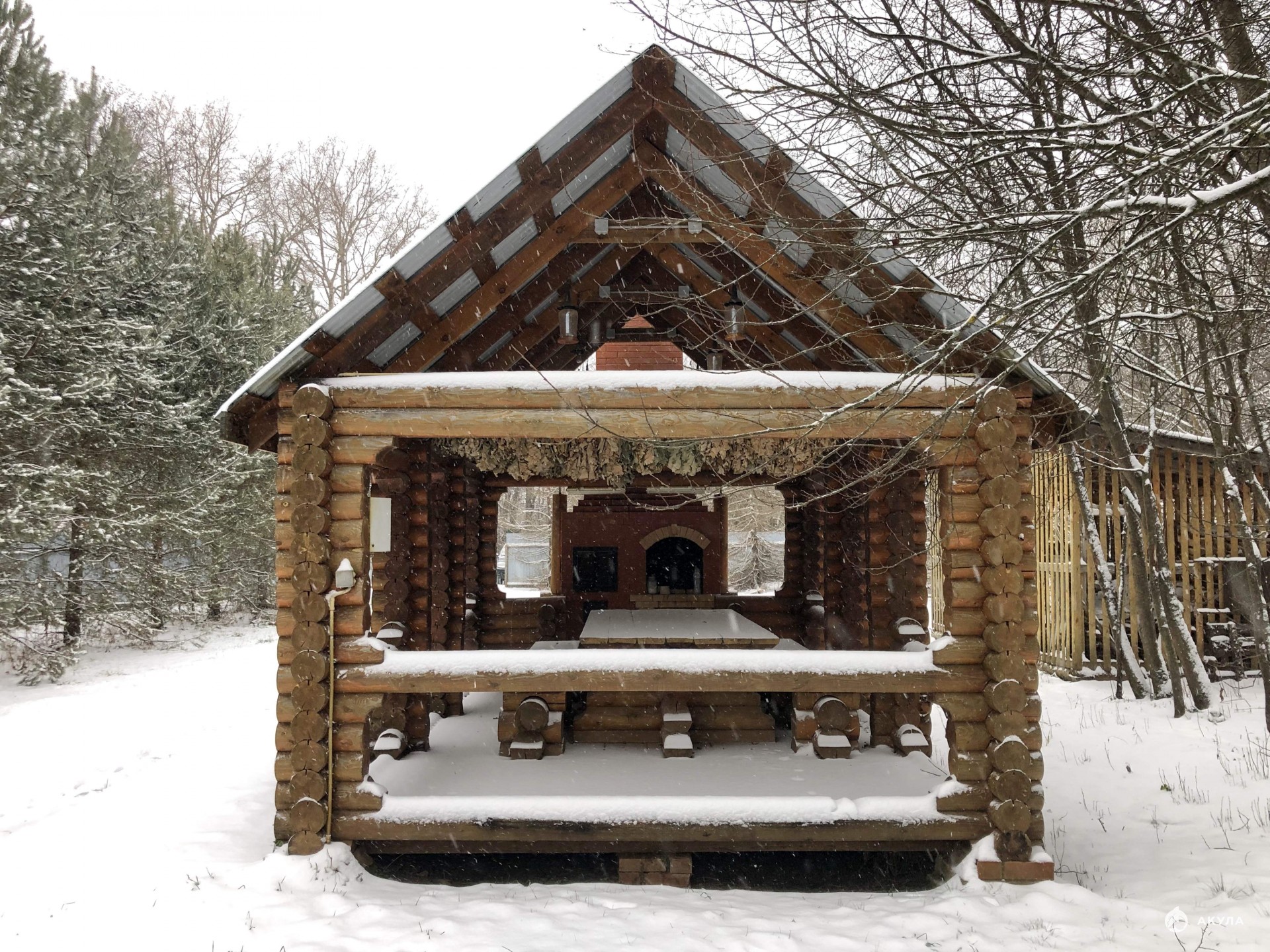в которой инсталлирована стационарная кирпичная печь-мангал. Есть перспектива сделать беседку круглогодичного использования.