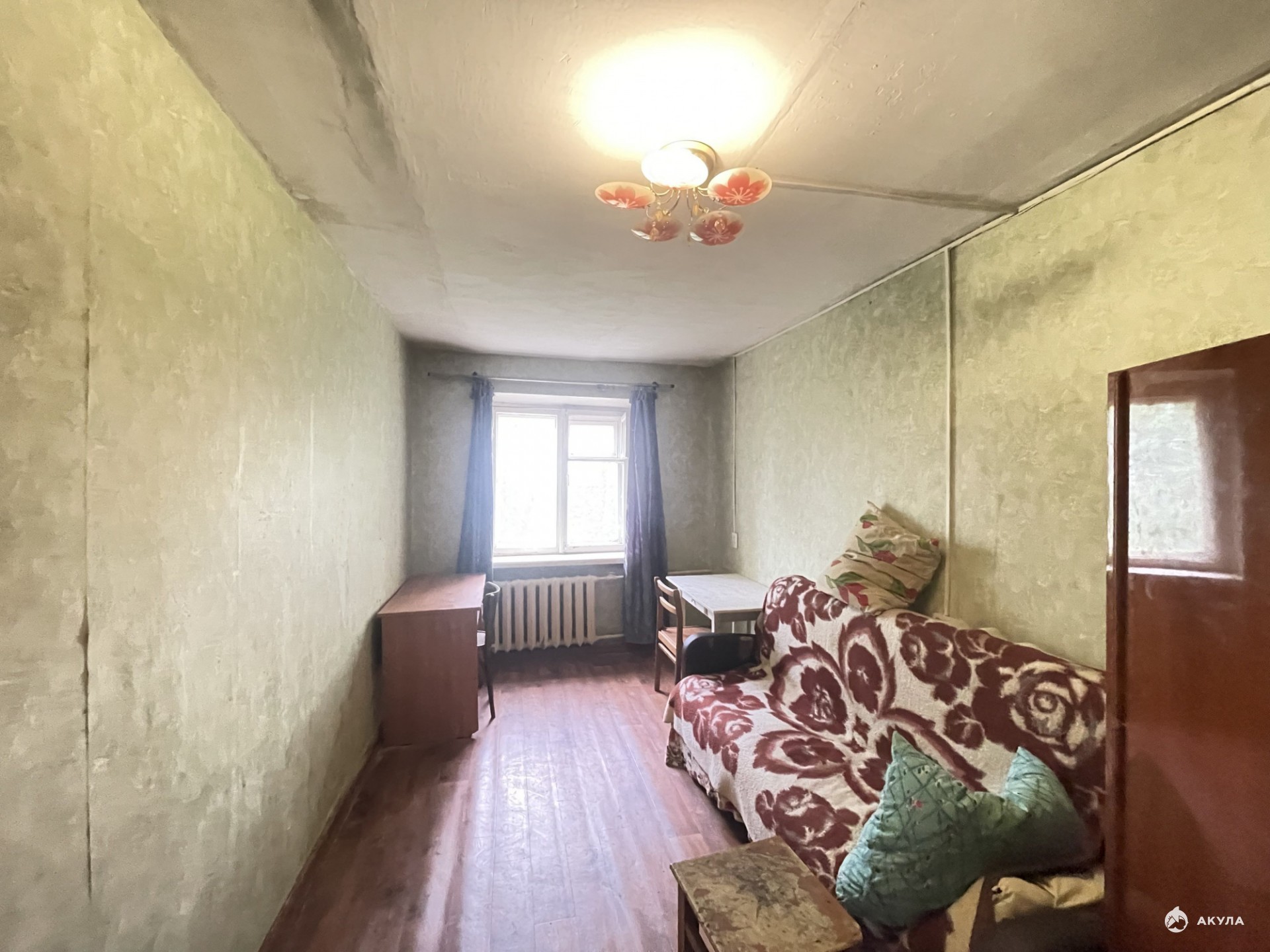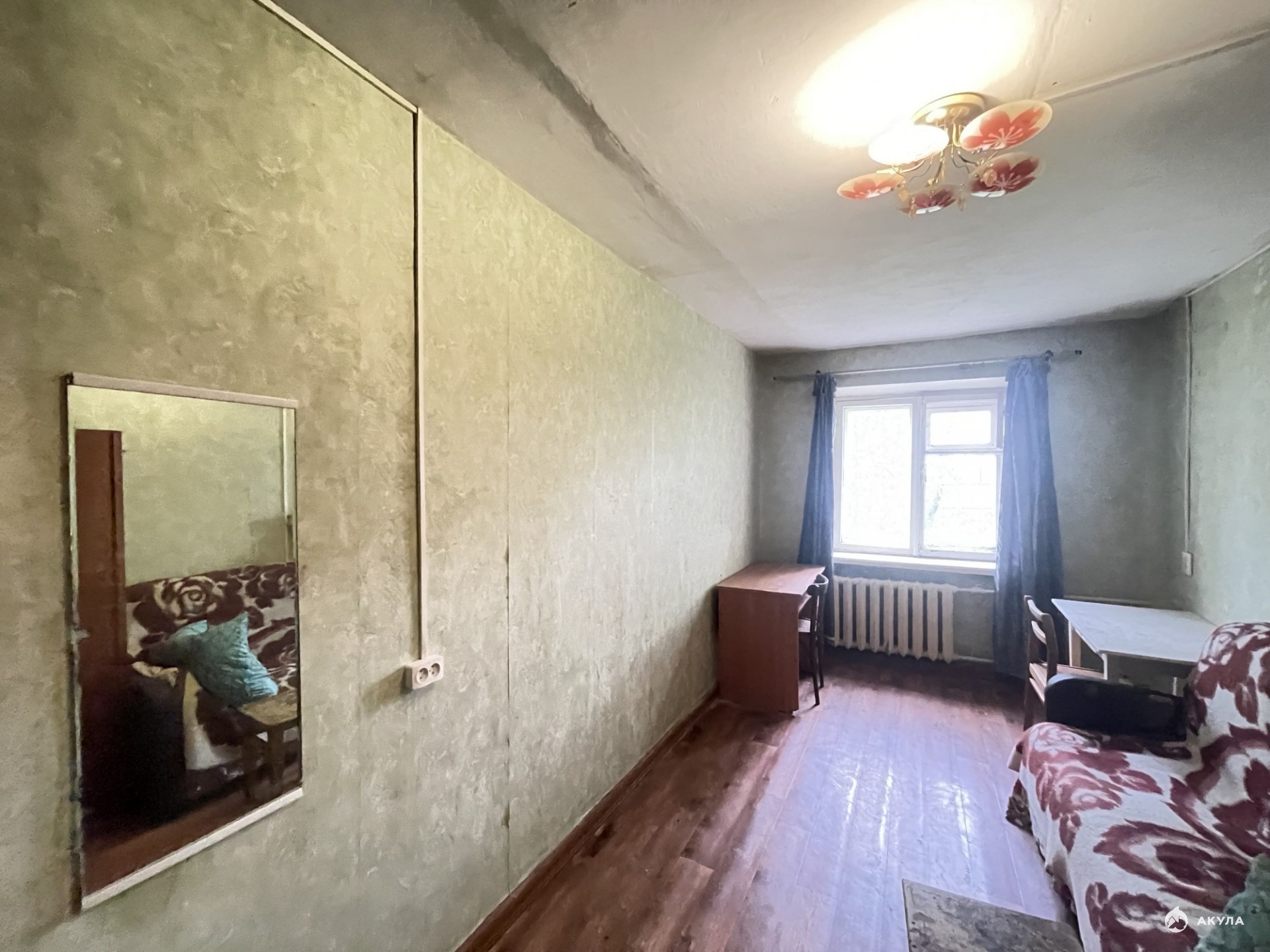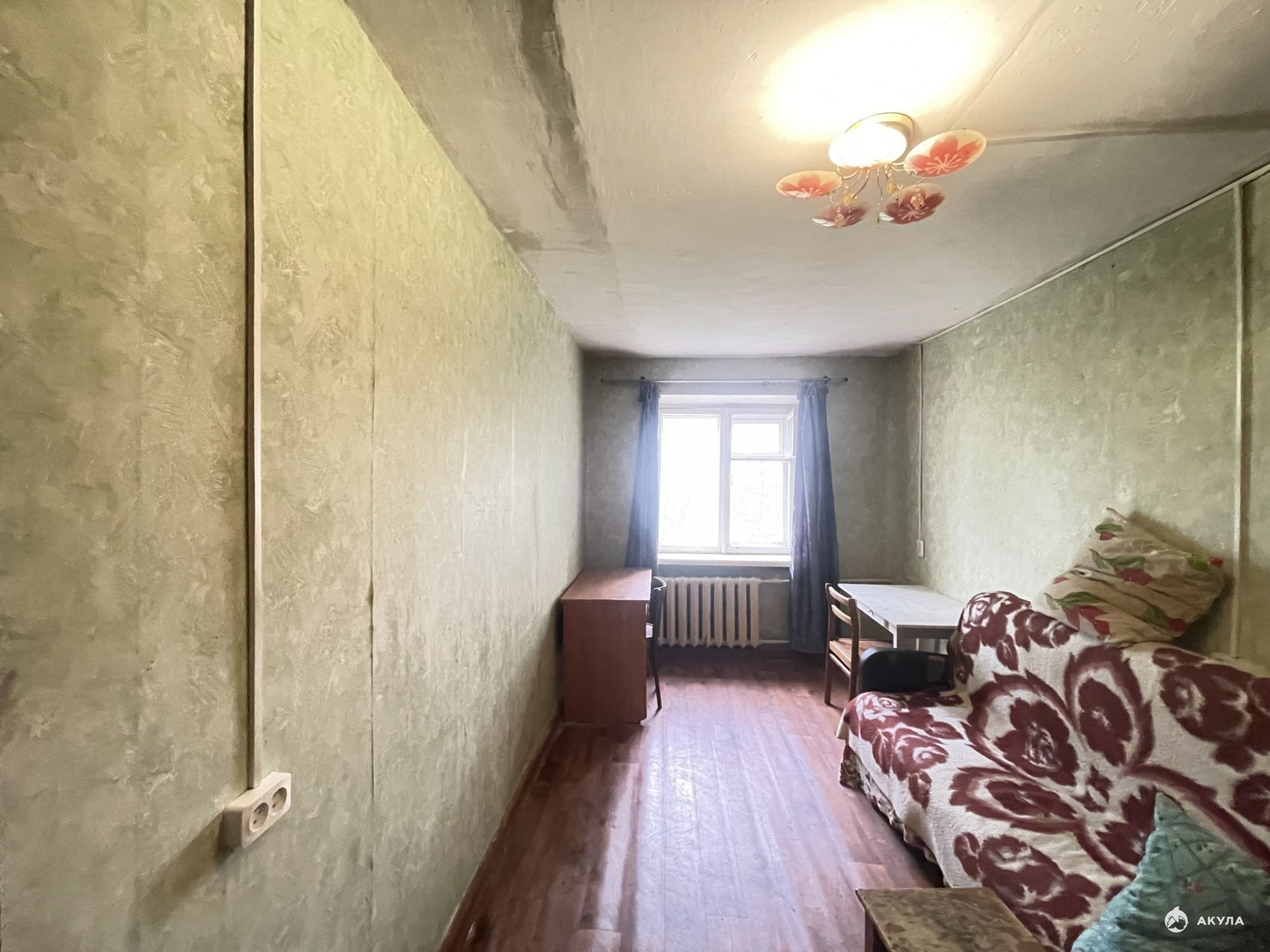 ** Не угловая. Общая площадь: 14 кв. м. Окно выходит в тихий двор. В квартире 5 комнат, живут только в двух комнатах.