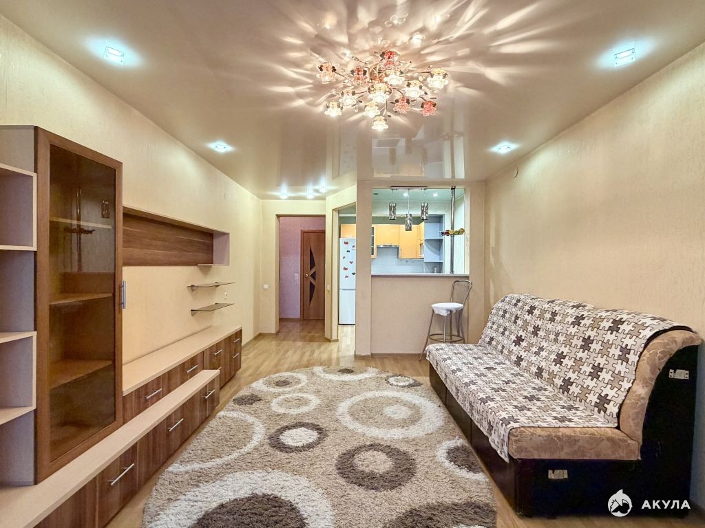 Состояние квартиры хорошее: ламинат, натяжные потолки, биметаллические батареи, кафель в сан.узле, застекленный балкон.