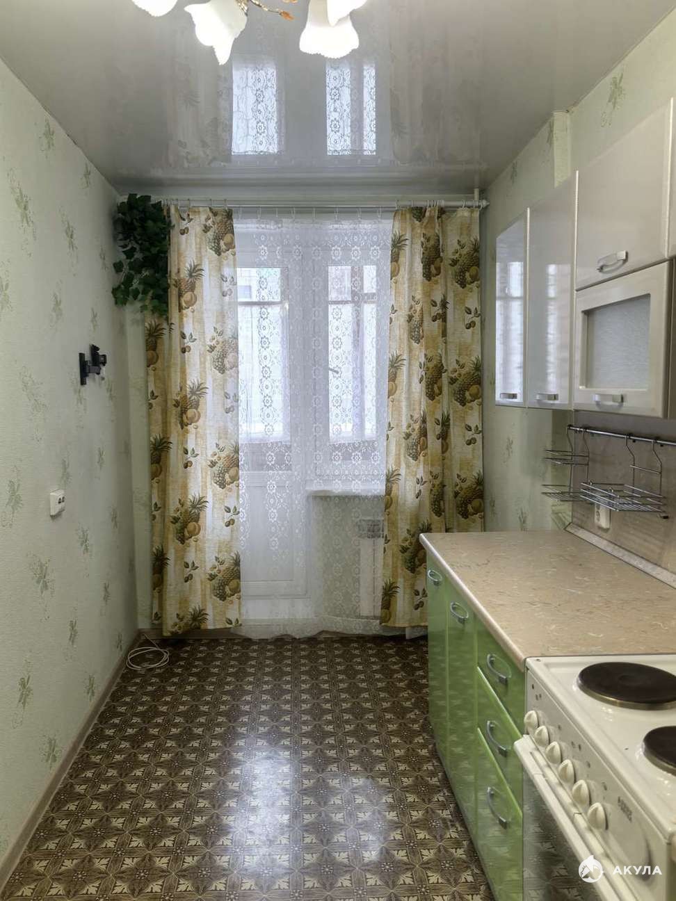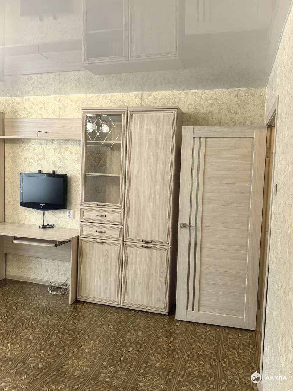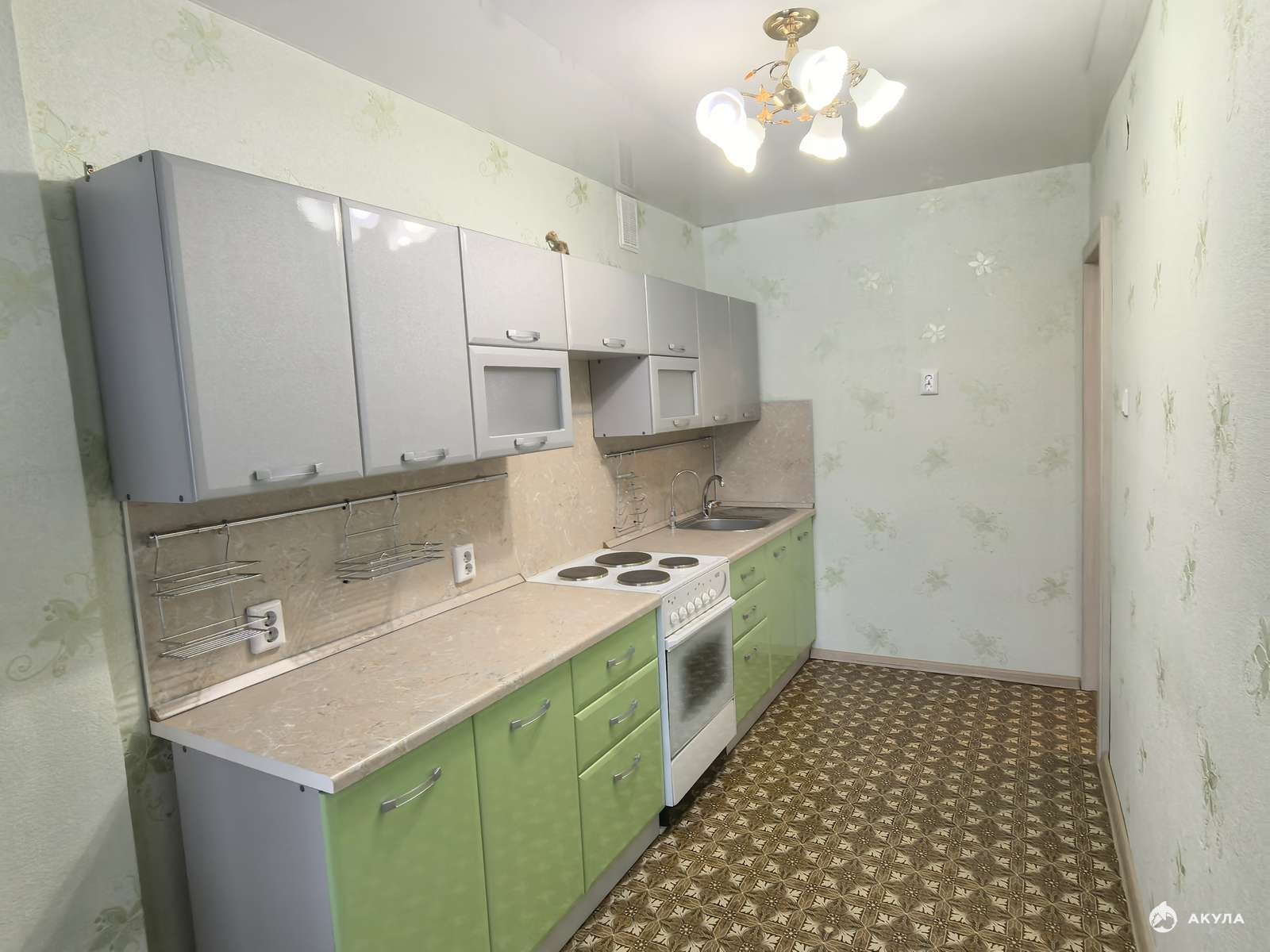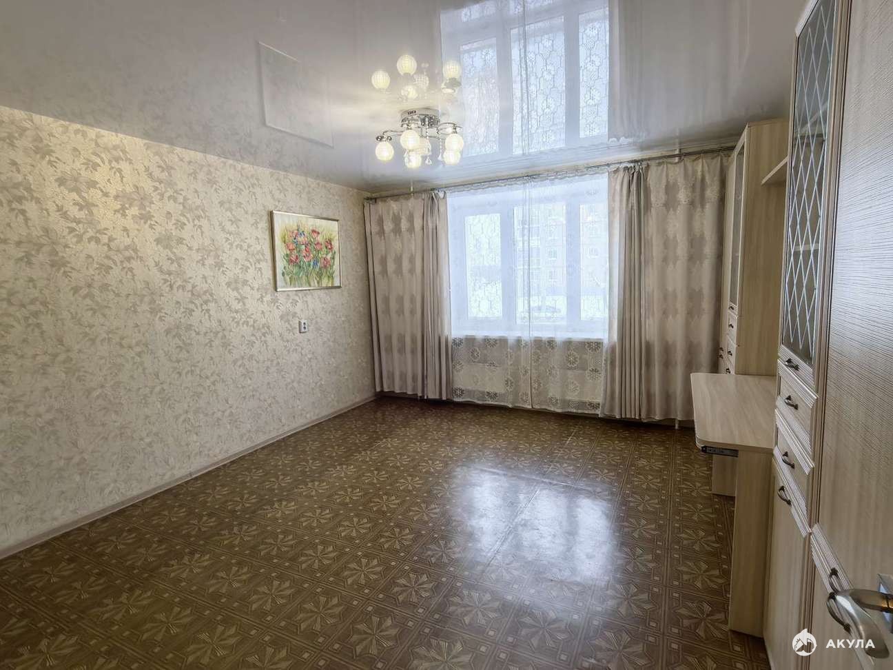 В квартире остаётся всё, что есть на фото: кухонный гарнитур, мебель стенка, телевизор, прихожая.