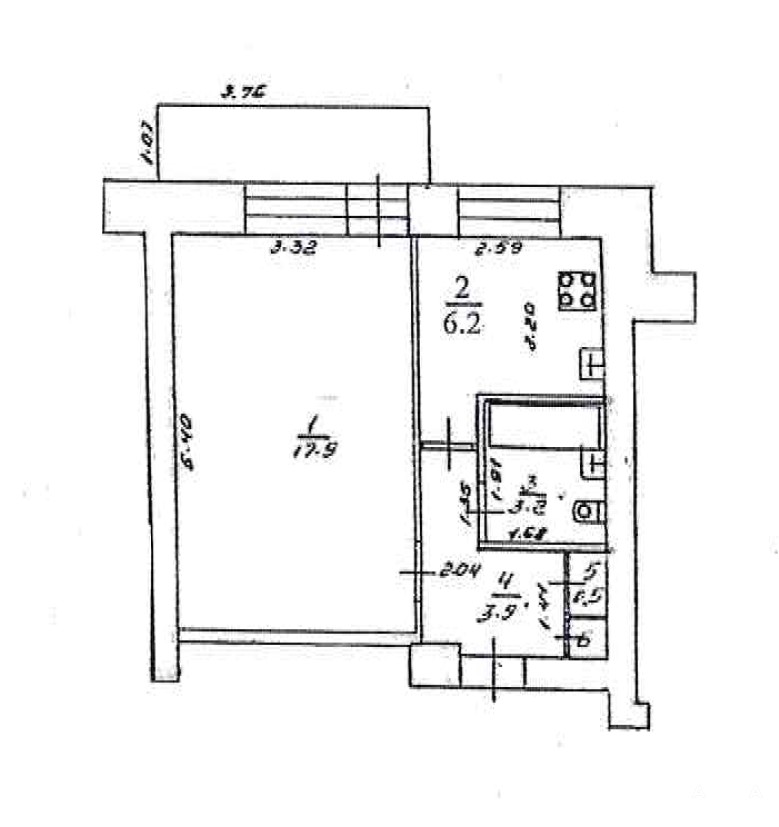 * Квартира не угловая, очень теплая, высокий 1 этаж. Общая площадь: 32 кв.м., жилая: 18 кв.м., кухня: 6 кв.м., балкон: 4 кв.м. Прихожая с нишей, под гардероб. Санузел совмещён. На этаже 3 квартиры.