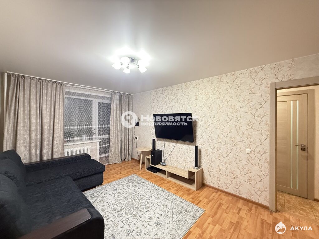 Арт. 92538292. ** 1-комнатная квартира новой планировки в Нововятске, по адресу: город Киров, улица Парковая, 32 корпус 1, расположена на 5 этаже 6-этажного кирпичного дома 2006 года постройки.