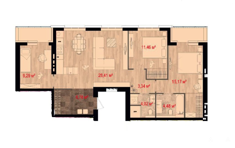 ** Состояние квартиры - идеальное. Общая площадь: 86 кв.м., имеется 2 лоджии (каждая по 4 кв.м.), просторная кухня-гостиная: 28 кв.м. и три изолированные комнаты: спальня (12 кв.м.) с оборудованной гардеробной (3 кв.м.) и выходом на лоджию (4 кв.м.); 1 детская (11, 5 кв.м.); 2 детская (9 кв.м.) с выходом на вторую лоджию (4 кв.м.). Два санузла: туалет (инстоляция + раковина) и просторная ванная комната (6 кв.м.) с большой зоной хранения и дополнительным унитазом. Удобная прихожая с большим гардеробом (9 кв.м.).