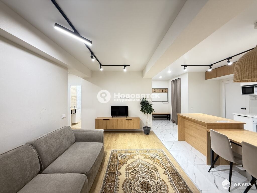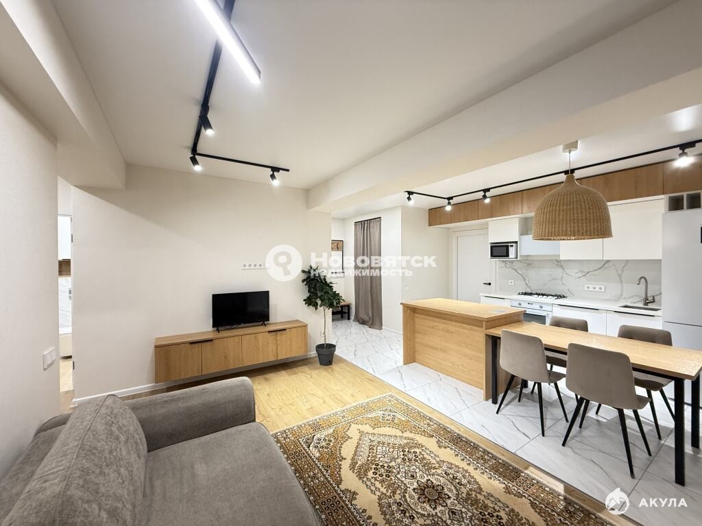** В квартире выполнен современный, качественный ремонт: окна - пластиковые стеклопакеты, пол - стяжка, покрытие ламинат 33 класса и керамогранит. Натяжной потолок с люстрой и точечными светильниками. Огромное количество выключателей и розеток, в том числе, выключатели "проходные" - все выполнено для максимального комфорта жильцов. Куда бы вы не присели, везде будет рядом розетка, для вашего удобства. Дополнительное освещение - трековые светильники, для удобного использования и акцентирования необходимой зоны. Во всех комнатах выведено оборудование под ТВ-зону.