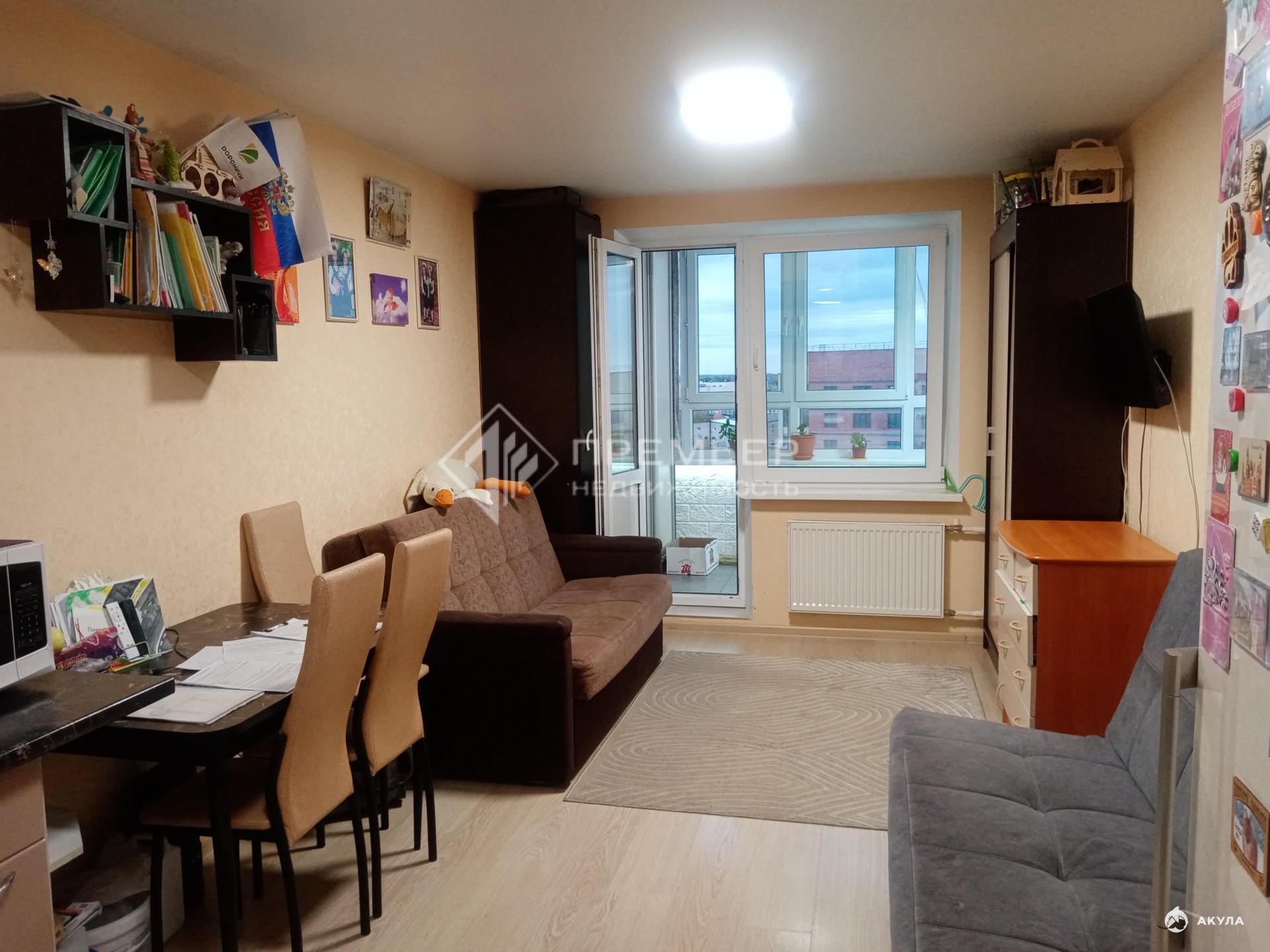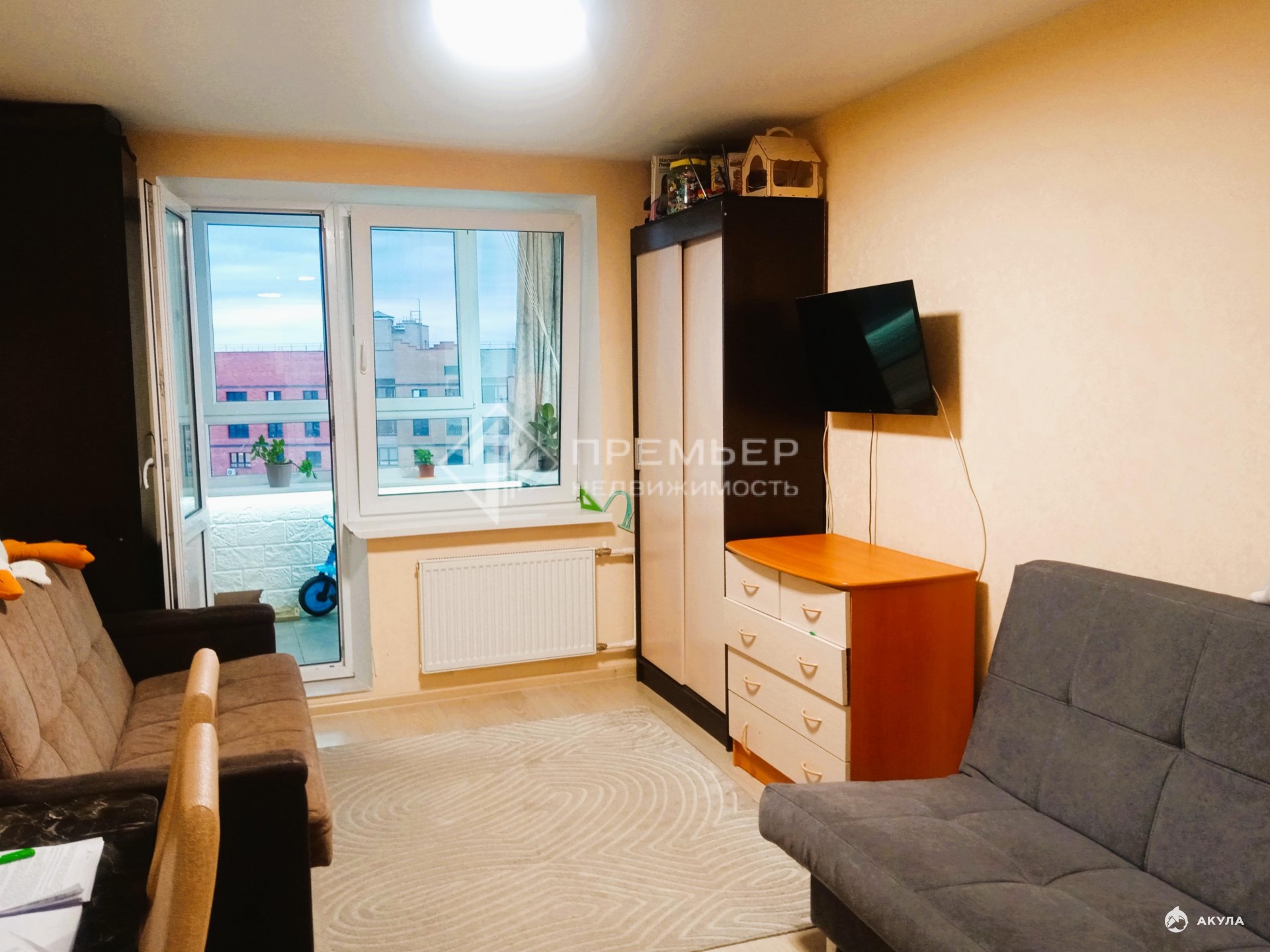 Студия просторная - 27 кв.м., так как лоджия полностью сделана в жилую комнату: теплый пол - напольная плитка с подогревом, утеплённые стены, тройной стеклопакет. Солнышко в квартире с полудня до заката, а закаты потрясающе красивые.
